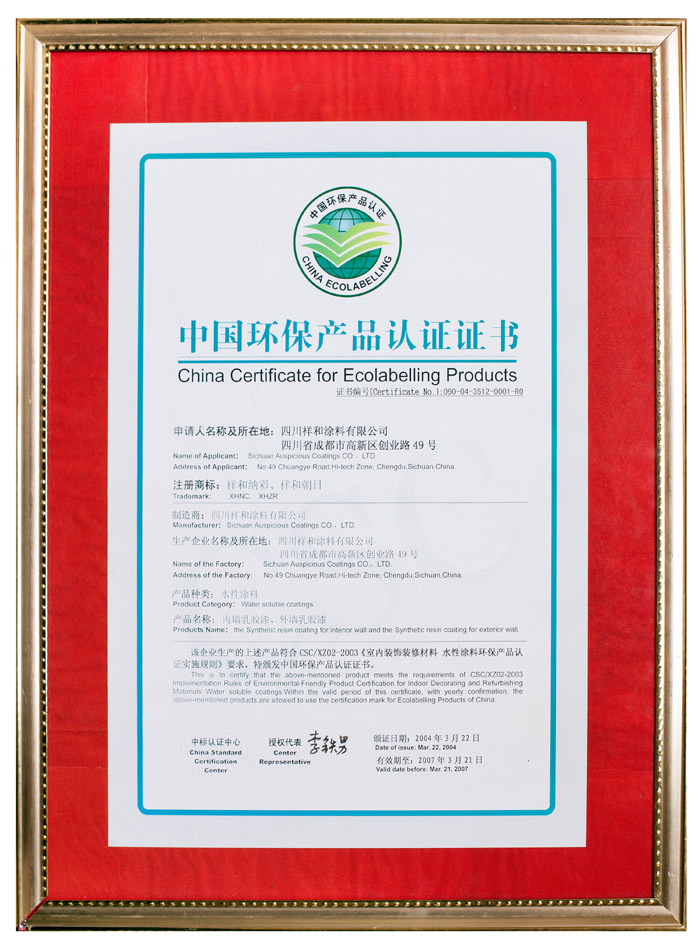 中國(guó)環(huán)保產(chǎn)品認(rèn)證證書(shū)